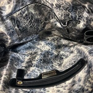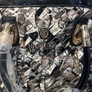 Galian Handbag Satchel Purse Magazine Collage Black Patent Leather Trim