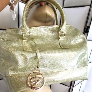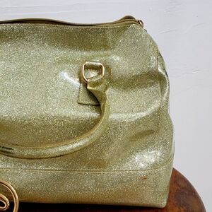 mettalic gold sparkle hard plastic shoulder bag. small imperfections. see pics.