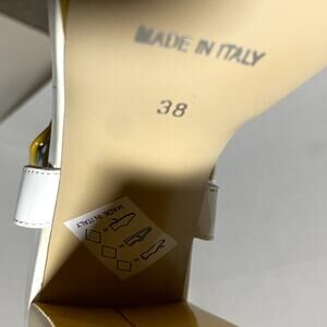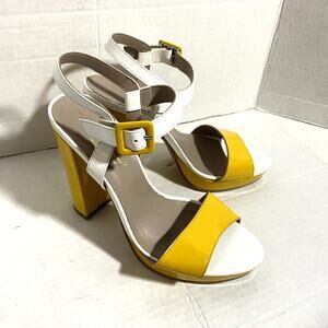 Galieti Patent Leather White Yellow Retro Pin Up Open Toe 5" Heels Sz 38 7.5