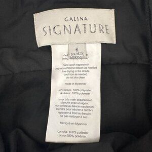 Step into elegance with the Galina Signature Charmeuse V-Neck A-Line Dress in classic black, size 6. Featuring a flattering V-neckline, delicate flutter sleeves, and a flowing A-line silhouette