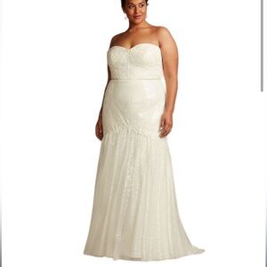 Galina Signature Ivory allover sequin w/ beading corset plus wedding dress Size 20 NWT