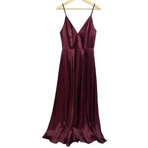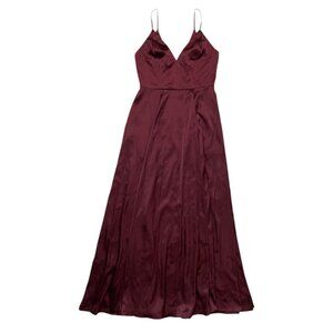 Galina Signature Satin Vneck Maxi Bridesmaid Dress Maroon Size 10 Formal Wedding