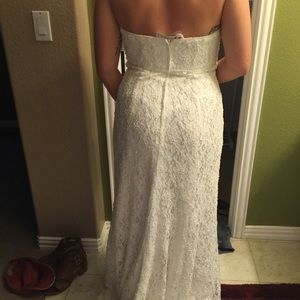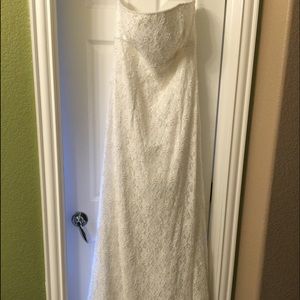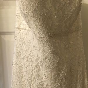 Brand new dress! Has lace and pearl detail. Got from David's Bridal. Never altered and only worn for picture. Also can include lace waist belt for an additional $50! Price for dress can be negotiated