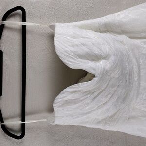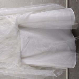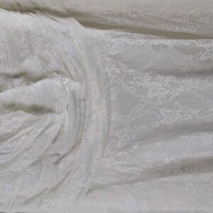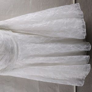 Galina Woman Women's Plus Ivory Lace Overall Tulle Lining Netting Ruching Sweetheart Neckline Strapless Tea Length Circle Pleated Skirt Formal Dress. Lace: 100% Nylon, Tulle: 100% Polyester, Netting: 100% Nylon. Bone-In Bodice. Measurements approx. Flat Lay. Pit to Pit: 21, Length: 34". Style# 9WG3826. Size 20. NWT Color May Vary Due To Lighting.