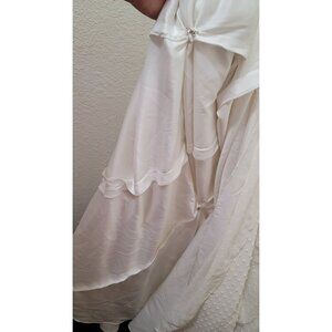 This elegant Ivory maxi dress features a halter neck design and a stylish bow at the back. The flowing fabric with a subtle polka dot texture adds sophistication.