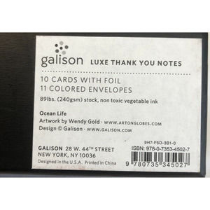Galison Luxe Thank You Note Cards NIB Ocean LIfe Wendy Gold 10 Cards w/ Foil NEW. 5.25" x 4".