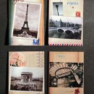Twenty cards total, four designs with five cards each: Eiffel Tower, Bridge, Metro Station, and Arc de Triomphe