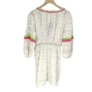 Galita Boho Eyelet Tiered Cotton Mini Dress White Size Large NWT