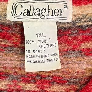 Gallagher shetland wool button front cardigan.Fair Isle pattern. Rich red and gray tones. Perfect for layering.Made in Hong Kong. Vintage. Pre-used
