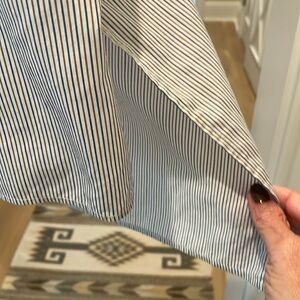 Size medium fits up to xl. Standup collar. Henley button front. Shirttail hem longer in back than front. French brand. Very good condition. Blue and tan stripe.
