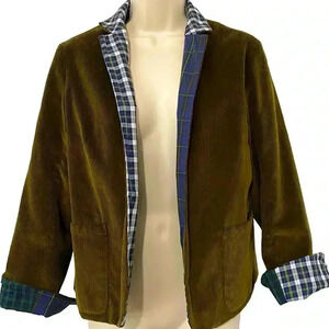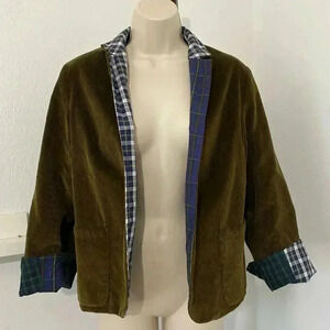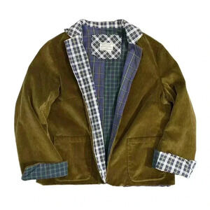 Gallego Desportes Paris Corduroy Jacket France European Chic Green Plaid