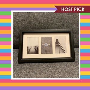 Brand new, never used. From Bed Bath & Beyond. From web: Display your favorite photograph in this Multi-Photo Picture Frame. This classic black frame creates the perfect display on a tabletop or wall, putting the focus on your favorite photos in any room in your home. Single matted 2" x 3" openings showcases your favorite photos. Black finish. Can sit on a tabletop or hang on a wall. 3-photo frame measures 5.57" W x 9.57" H overall. Wood/glass/MDF/paper.