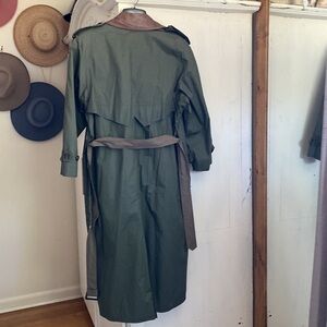 Vintage Gallery green detachable leather collar button down trench coat size 14 ( doesn’t have liner)