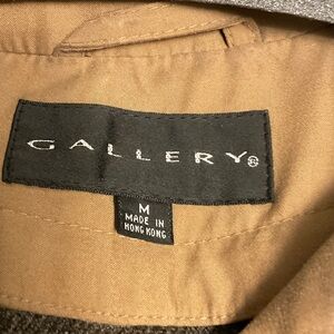 Stylish Gallery raincoat with black body and tan collar. Perfect for wet weather.