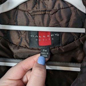 Gallery Chocolate Brown Quilted Full Zip Puffer Coat Size Petite Medium