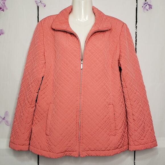 Gallery Coral Quilted Lined Lightweight Zip Blazer Jacket L