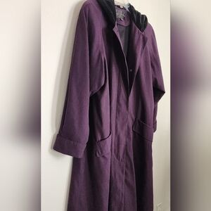 Gallery Deep Purple Button Up Removable Lining Full Length Pockets Hooded Sz 10