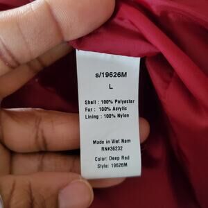 Gallery Deep Red Faux Fur Collar Quilted Jacket Size L