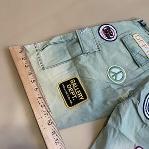 Explore style and comfort with Gallery Dept green cargo shorts. Perfect for casual outings, these shorts feature unique patches for a trendy look.