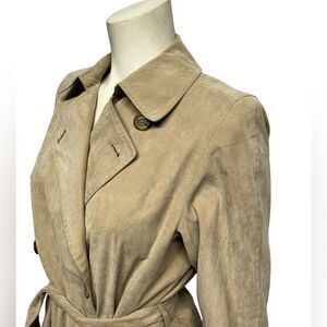 Gallery Faux Suede Tan Trench Coat with Belt Tie Long Coat Spring Fall Jacket