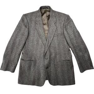 Gallery Haggar Vintage 90s Wool Suit Jacket 46 | Gray Herringbone Sport Coat USA