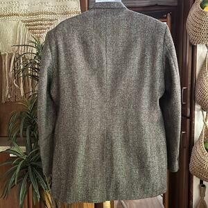 Keywords: vintage blazer, mens wool sport coat, 90s menswear, gray herringbone jacket, classic mens blazer, Haggar blazer USA, retro office wear, vintage preppy, made in USA wool, tailored sport coat, timeless blazer, vintage business jacket, fall wedding outfit, blazer with pockets, grandpa blazer
