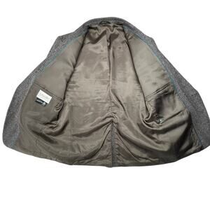 Step into timeless tailoring with this Gallery by Haggar blazer from the late '90s to early 2000s. Crafted in the USA from 100% pure wool, this sport coat features a handsome gray herringbone weave with faint hints of teal and rose—subtle touches that add character without overwhelming the classic silhouette. The full lining is accented with a teal trim, creating a hidden detail that elevates the design. Whether you’re heading to a winter wedding, a weekend upstate, or just want to sharpen up your fall layering game, this jacket brings vintage polish with enduring quality.