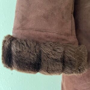 Gallery Long Brown Faux Fur Zip Up Hooded Coat Women's Size Medium