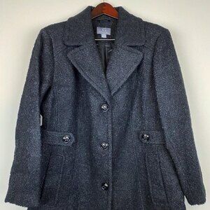Gallery New York Plus Notch Collar Boucle Wool Blend Coat Black Size 2X NWT