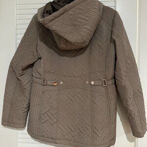 Gallery New York Women’s Quilted Hooded Jacket – Taupe Brown – Size S