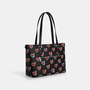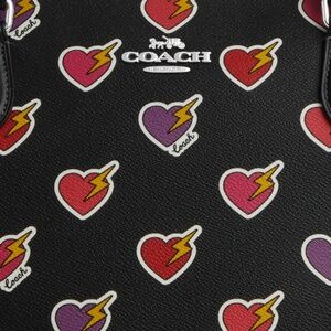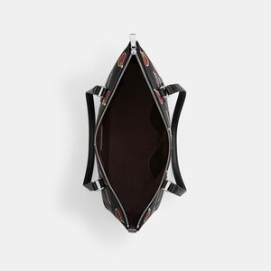 Printed coated canvas Inside zip cell phone and multifunction pockets Zip-top closure fabric lining Handles with 10 1/2 drop Outside zip pocket 14 1/2 (L) x 9 3/4 (H) x 6 (W) Style No. CW434