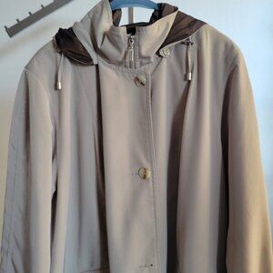 Gallery Woman Long- Hooded Light Beige Overcoat w/Removable Hood Liner (2X)