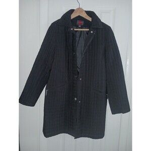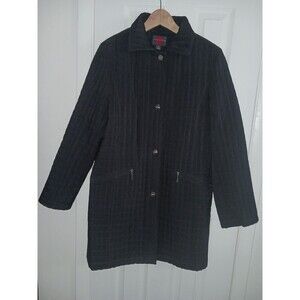Gallery Women Coat Jacket Medium Quilt Black Long Sleeve Collared Zip Up Pockets
