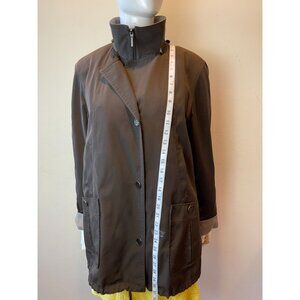 Gallery Womens Rain Coat Jacket Poly Stand Collar Zipper Snaps Black Size Small