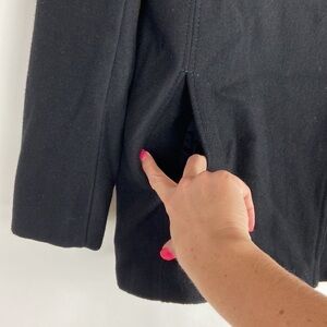 Stylish evening jacket winter jacket fall spring jacket versatile jacket outerwear Office wear career wear cocktail party outing classic designer statement piece designer look modest timeless classic trendy jacket shabby chic Pea coat trench coat winter coat fall jacket heavy duty wool Ski trip snow day