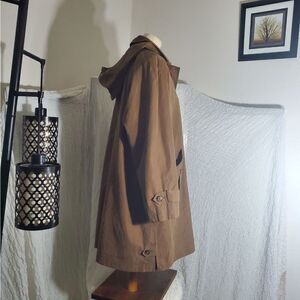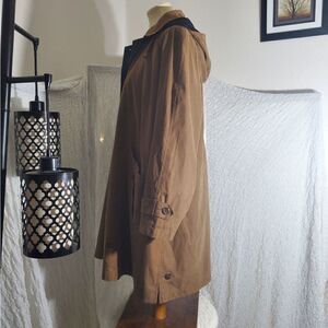 Classic trench coat with detachable hood. Two big front pockets. Front button closure. Pre-owned in great condition. Please refer to pictures for best description and condition verification.