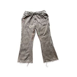 Condition: Pre-owned with intentional paint marks, distressing, and raw hems—part of the design.