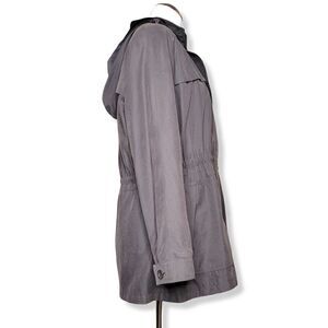 Grey, Gray, Coat, Jacket, Velvet, Soft, Removable hood and lining. Fall, Winter, Polyester, Nylon, Rayon, Dry clean, RN36232, Casual, Everyday, Outerwear, Button & Zipper Front