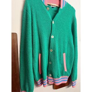 Gallia Green Pink Blue Cotton Blend Knit Long Sleeve Cardigan Sweater Size Large