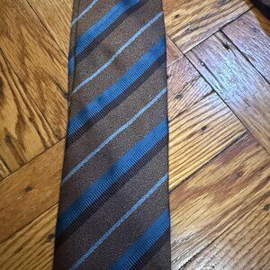 Gallieni 100% Silk Tie Made in Italy Brown & Blue Striped Necktie 63” x 3.5” Lux
