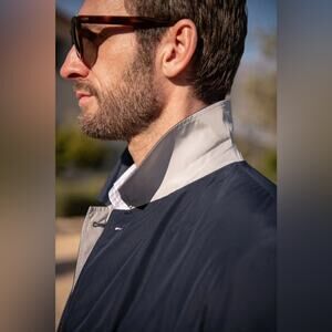 Gallotti Men's Reversible Raincoat in Navy and Beige Size US 42 NWT