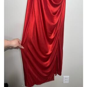 Galvan London $1595 Mars Metallic Ruched Midi Dress Cowl Neck Red Size US 6