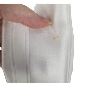 Embrace 70s-inspired glamour with this plunging jumpsuit with sweeping wide-legs. Galvan captures a graceful fluidity in this white Eden jumpsuit, which will make a contemporary wedding option. It's crafted in Italy from silk-blend satin woven with subtle stripes, and cut to an elegant shape with long ties at the base of the deep V-neckline, falling to sweeping wide legs. Add pearl-embellished accessories to heighten the refined mood. Plunging neckline, short puff sleeves, wide-leg. There is some makeup on the belt, and some dirt has gathered at the hem from brushing against the floor. This new with tags piece is ready for a modern bride on her big day, or maybe an engagement party or rehearsal dinner. The craftsmanship is excellent and this piece looks every bit the $1,725 that it retails. Originally from Net-a-Porter.