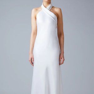 Galvan London Ivory Satin, Cropped Pandora Bridal Dress, Midi