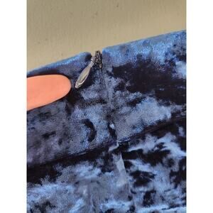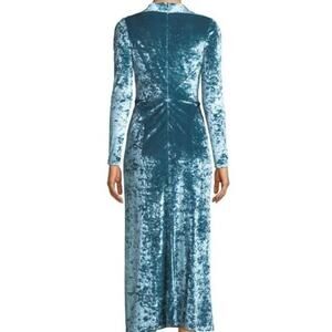 Galvan London Long-Sleeve Deep-V Hammered Velvet Cocktail Dress SZ 4 Blue #1D459