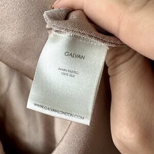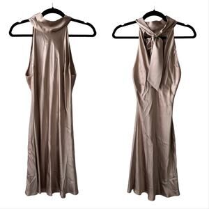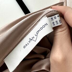 Galvan London Sienna Halter Mini Dress. Blush / Taupe color. Women's Size US 6 / Medium. Features satin fabric, tie neck closure, halter neck, short mini length. 100% silk. Great used condition, no notable flaws. Retail $1,250.