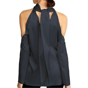 Galvan London Tunic Top Satin Long Sleeve Cold Shoulder Tie Back Black Size 2. Originally $650.