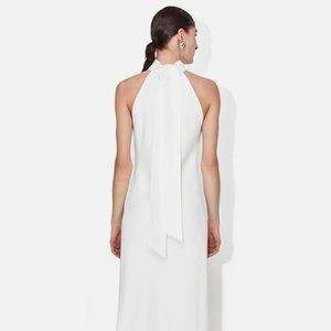 Current season, available online for $2,095. Galvan's 'Sienna' gown is perfect for a minimalist bride who's after an elegant, clean-lined look. Reminiscent of the style the Duchess of Sussex wore to her reception, it's made from lightweight crepe and has a flatteringly slim fit with a touch of stretch that allows you to dance comfortably all night. The high halterneck and languid ties call for a polished updo.