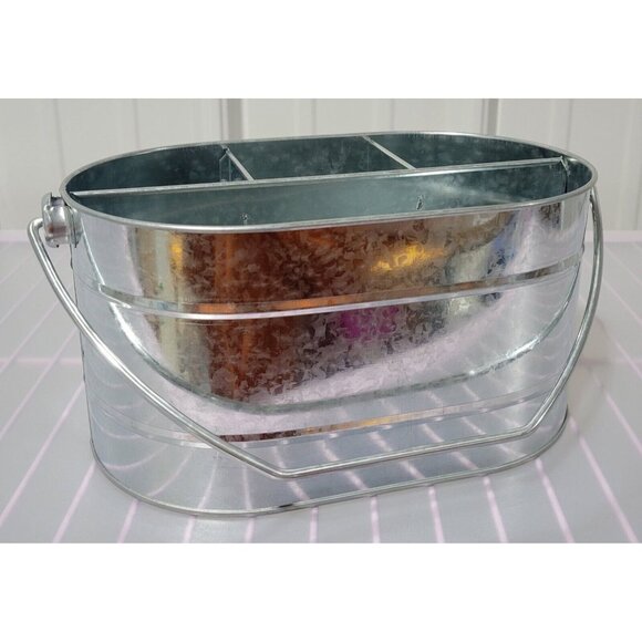 Galvanized 4 Compartment Vintage Style Metal Bucket Caddy w Handle 9.5 x 6 Base