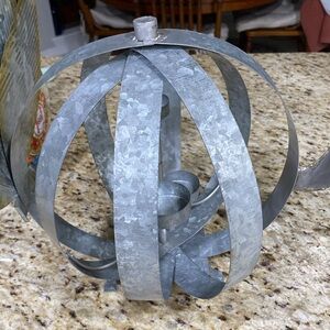 Galvanized metal Farmhouse fall holiday large foldable turkey pumpkin candle holder, holds 4 tea light candles, folds for easy storage. Great for Thanksgiving table.